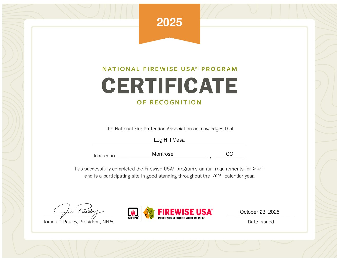 Log Hill Mesa Renews Firewise Status for 2024