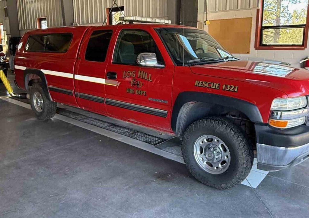Tender 1321 was purchased new in 2005 with the assistance of a Colorado Department of Local Affairs grant. Its primary mission is to carry 3000 gallons of water to assist firefighters in areas that are not serviced by fire hydrants. Tender 1321 is manned by a crew of 2 firefighters. It carries 4 Self Contained Breathing Apparatuses to supplement the supply carried on pumpers in the event of a large fire. Tender 1321 is equipped with drop-down “Insta-chains” to provide it with better mobility under adverse conditions. It carries a deployable 3000 gallon water reservoir which enables it to offload its water supply and begin refilling as a pumper used the first tank full of water. It was designed and built by Fouts Brothers Fire Trucks in Smyrna, GA.